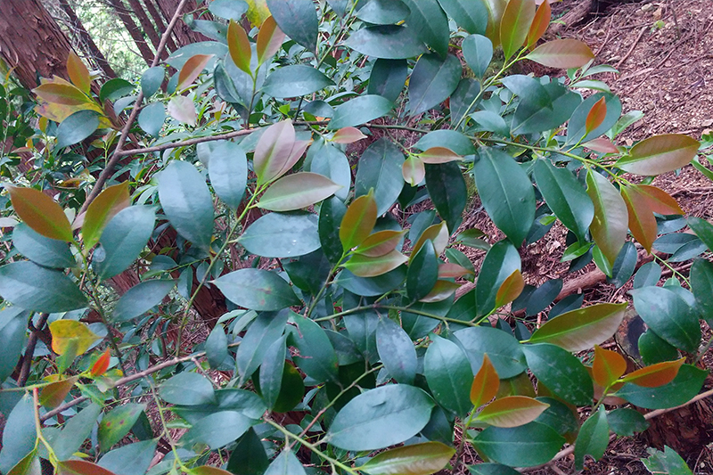右側の葉の淵回りがギザギザなのが姫榊ヒサカキです。