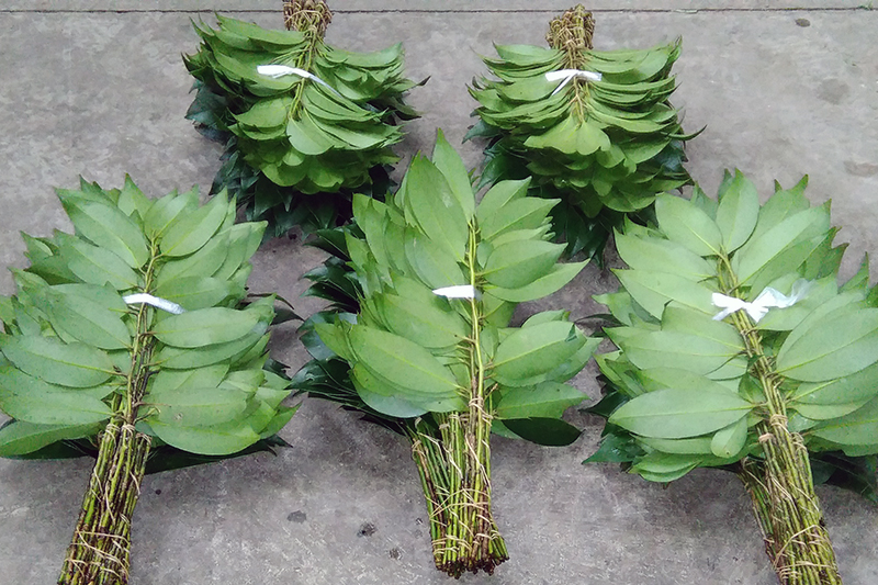 自生する榊を採取し一束々、真心込めて丁寧に束ねております。